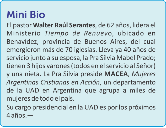 Pastor Serantes, antes que nada le deseamos que el Señor bendiga esta etapa que lo encuentra al frente de la Unión de Asambleas de Dios (UAD). Pr, usted ha integrado por mucho tiempo el Consejo Directivo de la UAD, por lo tanto conoce la institución a fondo. A partir de aquí, habrá determinados procesos de continuidad y procesos que implican cambios, respecto a la administración anterior. A grandes rasgos, ¿nos puede hablar al respecto, qué seguirá tal cual y qué implicará otra mirada?